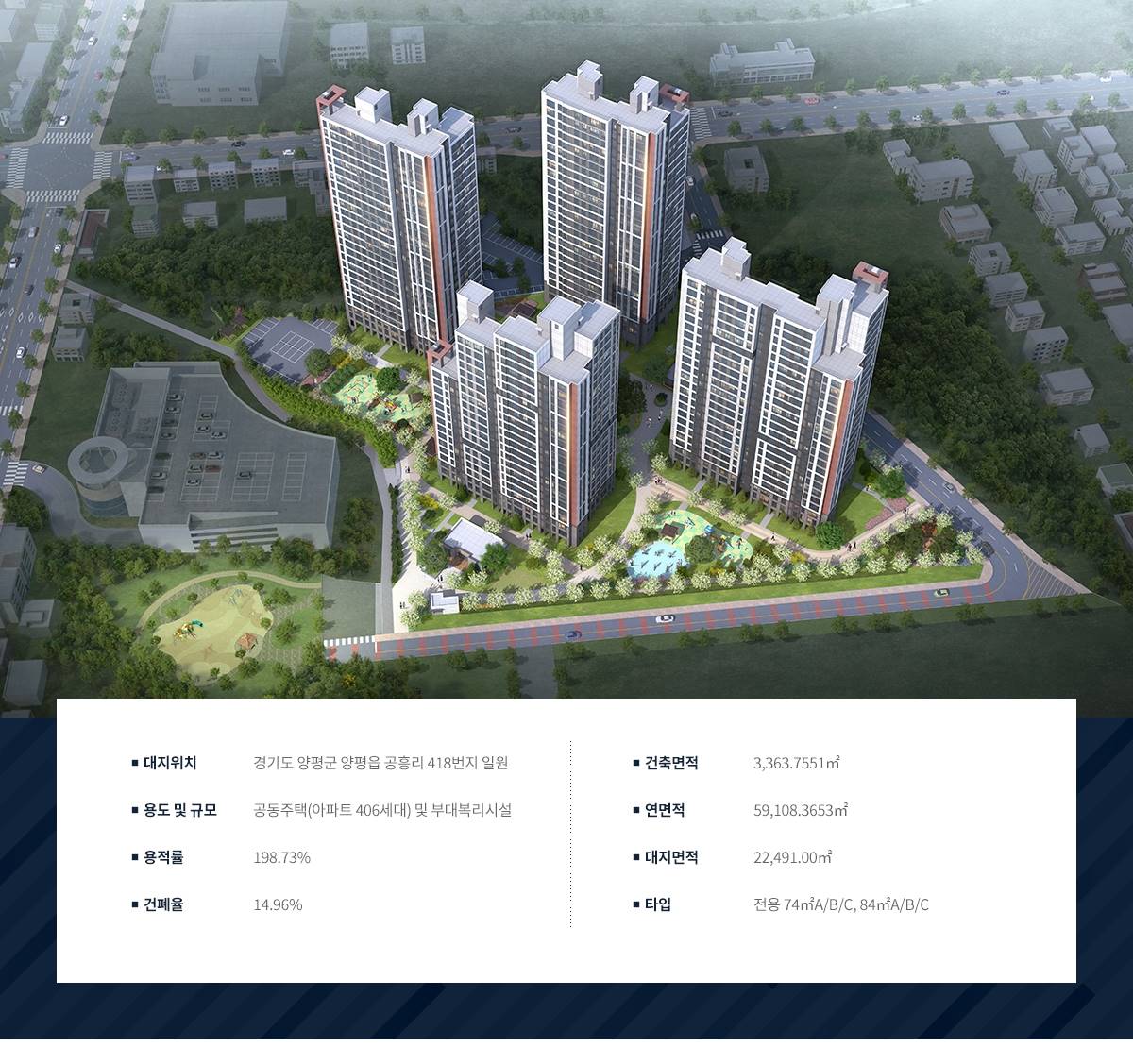 공흥지구와 양근지구를 잇는 대규모 주거벨트의 중심으로 향후 지역 가치 상승을 선도할 미래 비전을 보유하고 있습니다.